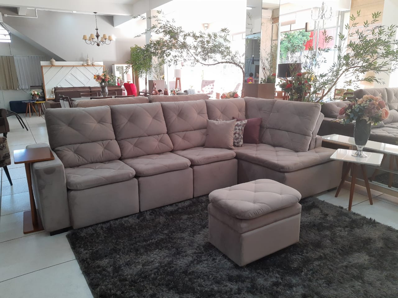 - Fixação:com grampos galvanizados antiferrugem;- Estrutura desenvolvida em madeira usinada ( reflorestamento );- Pés em madeira;- Estofado em formato L- Tecido/Cor ( cliente poderá definir pelo whatsapp (55)3332-8146 ); Medidas montado: