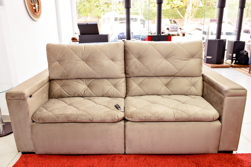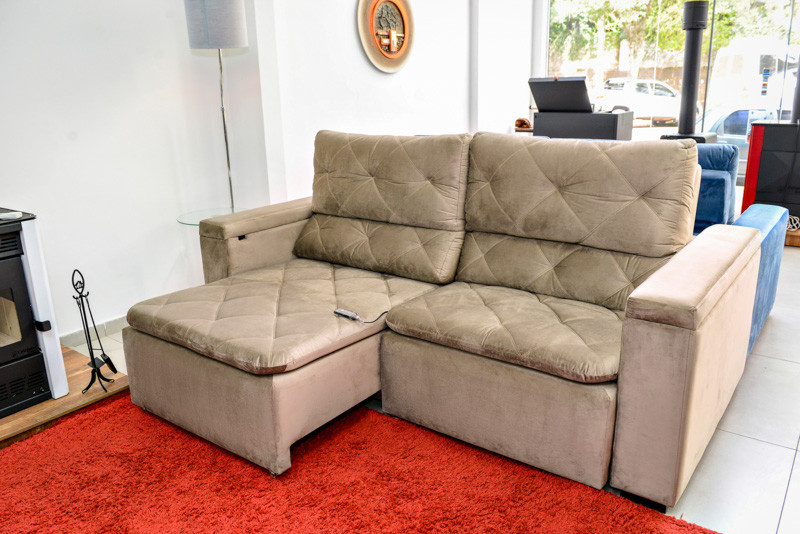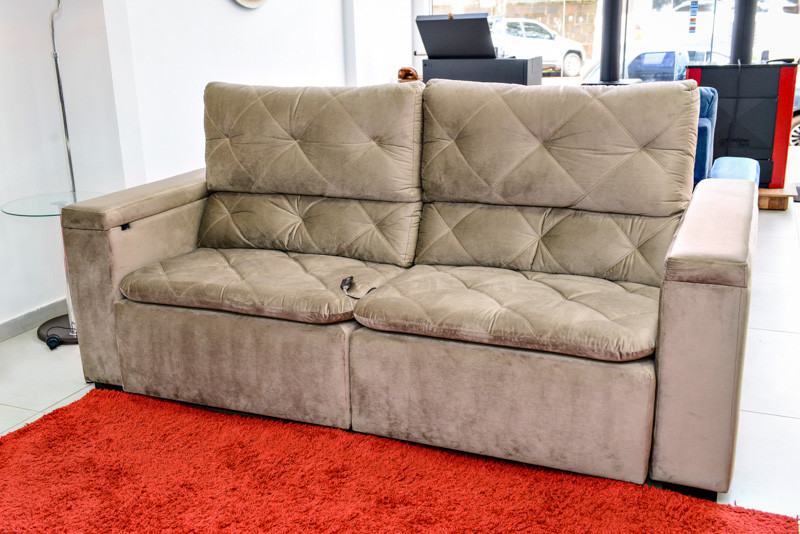 - Possui massageador por assento, contendo 3 niveis de intensidade;- Mesa auxiliar para Notebook, com tomada para carregador e entrada USB;- Baú em toda extensão do braço;- Pés em madeira;- Tecido/Cor ( cliente poderá definir pelo whatsapp (55)3332-8146 ); Medidas montado: