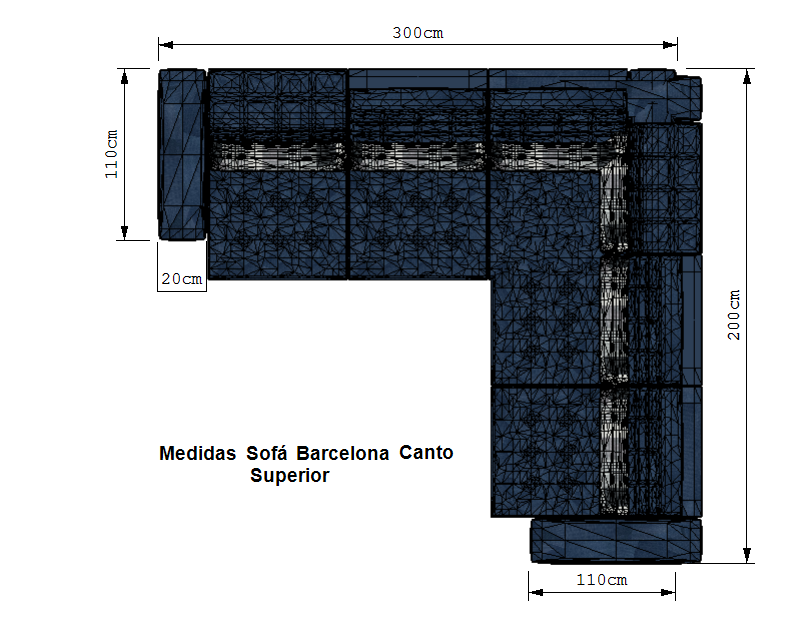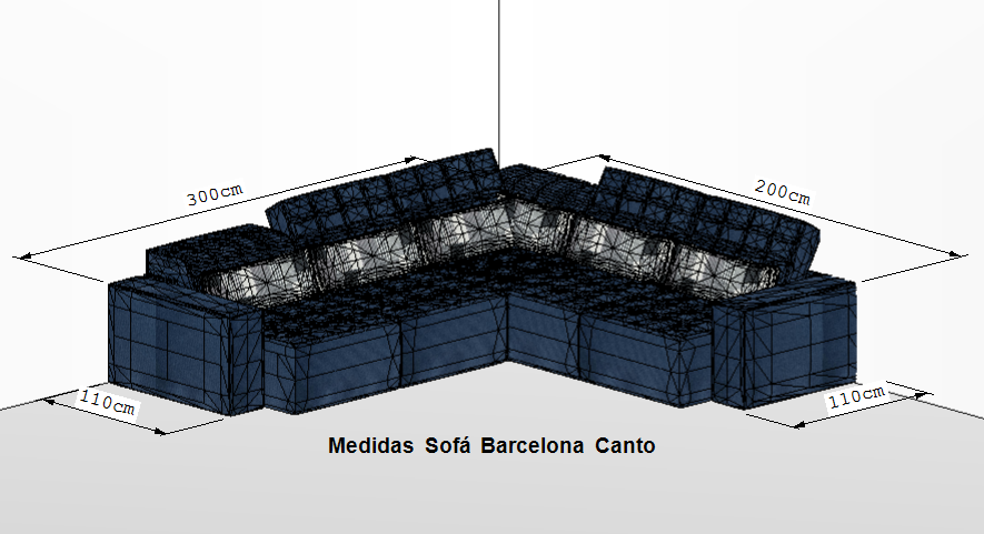 Estofado Barcelona canto 3m x 2m com chaise retrátil e encosto reclinável + pillow de silicone com fibra