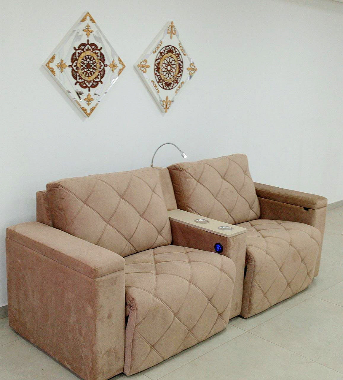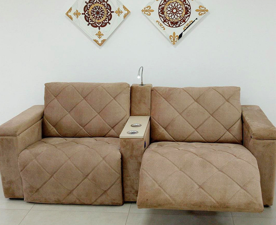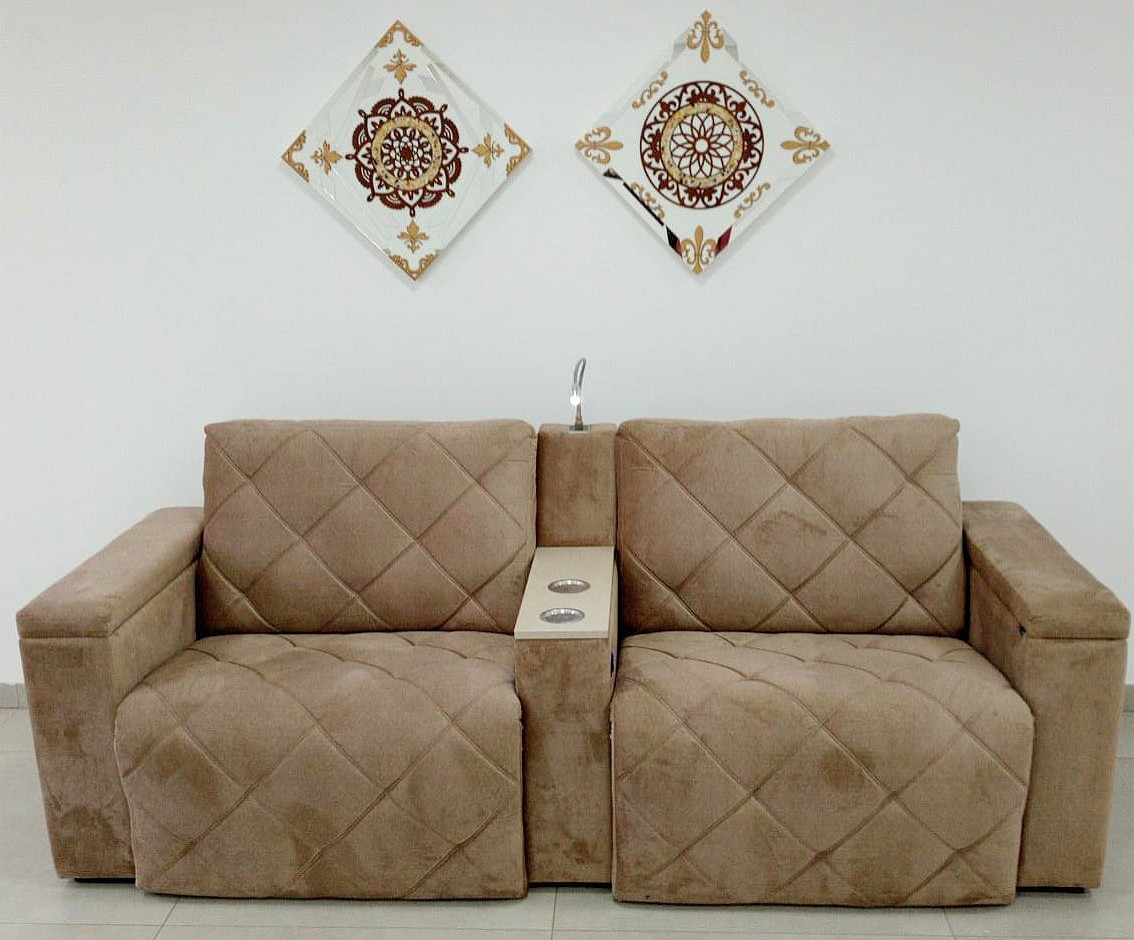 - Assentos: retráteis com molas ensacadas, percintas reforçada, camadas de espuma, pillow de espuma de silicone com fibra;- Braços em Espuma
